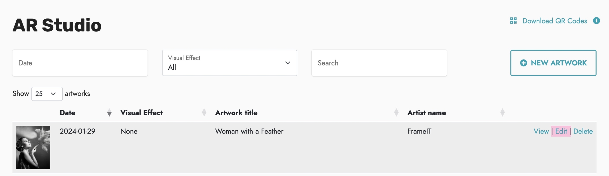 Pour modifier une oeuvre, cliquez sur le bouton AR Studio tout en haut à droite de l'écran.