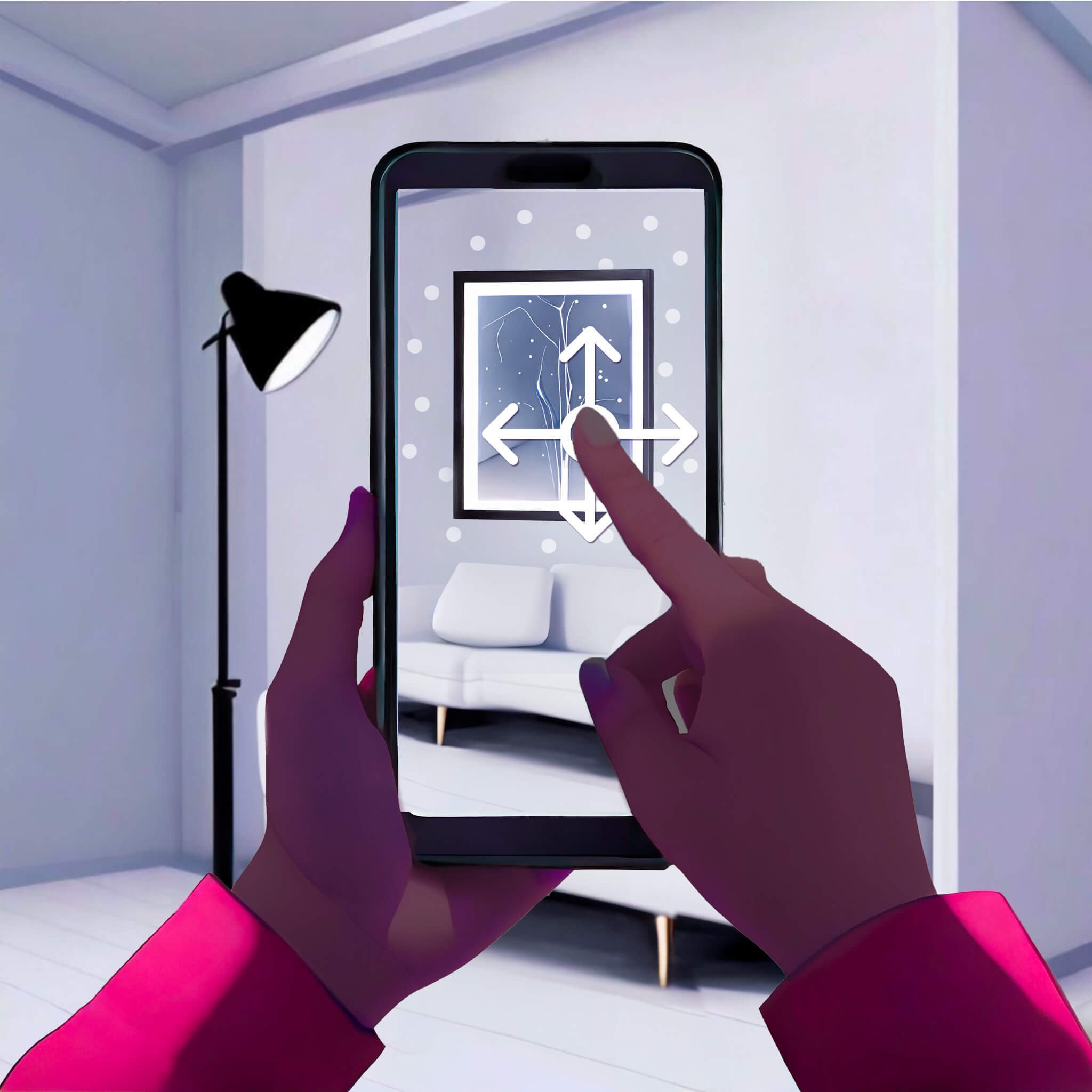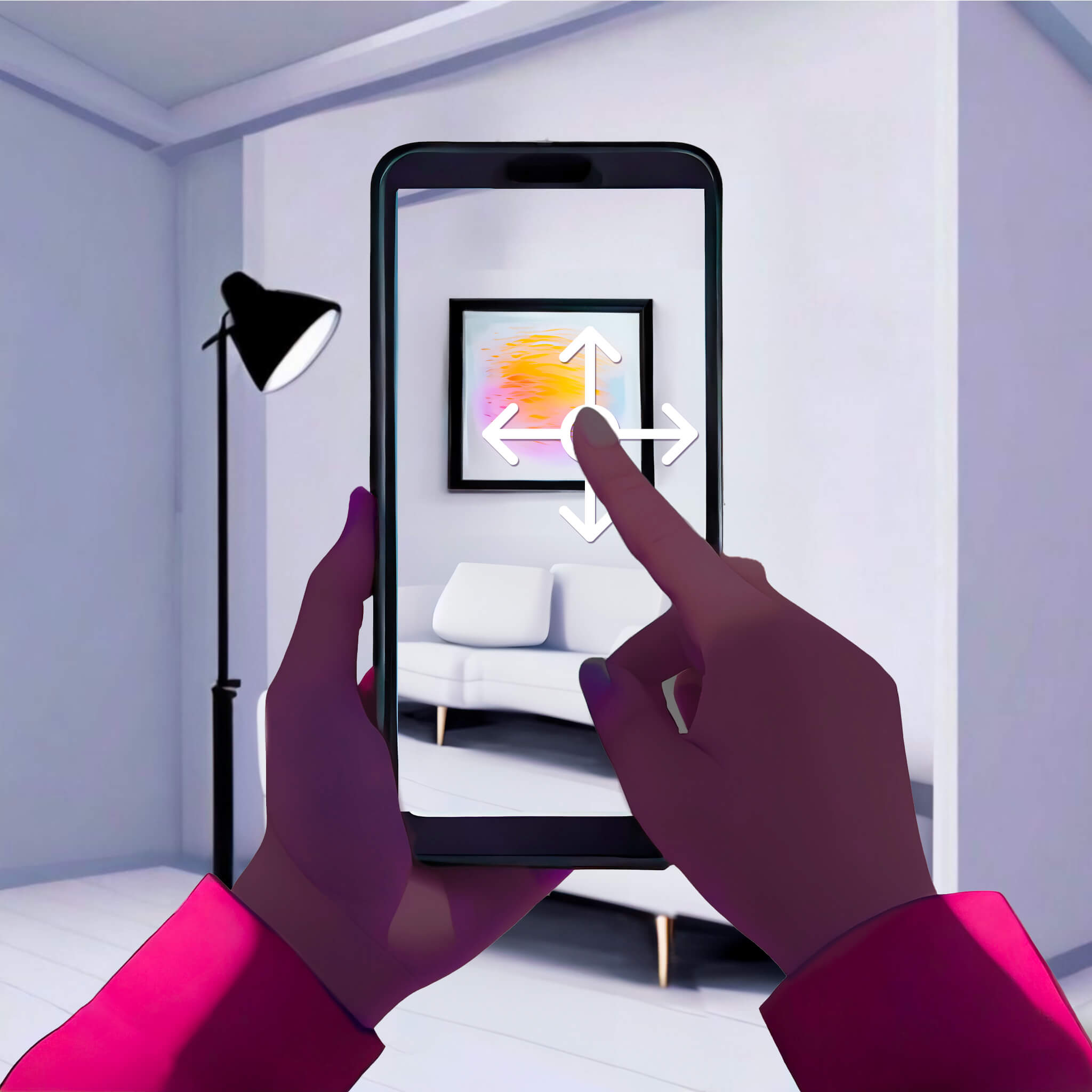 Ajustement : Une fois le tableau affiché en AR, vous pouvez le déplacer pour trouver l'emplacement idéal sur votre mur.