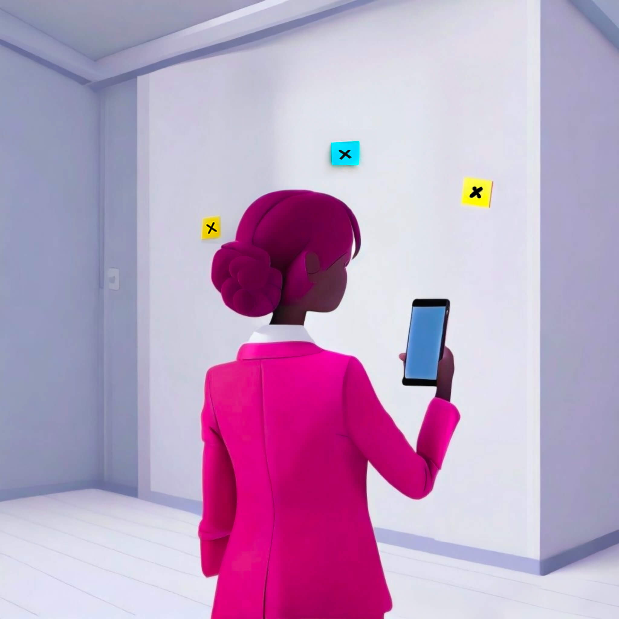 Astuce pour les murs unis : Si votre mur est trop uniforme et ne présente pas de caractéristiques identifiables, collez-y 2 ou 3 Post-its. Ils serviront de points de repère à la caméra.